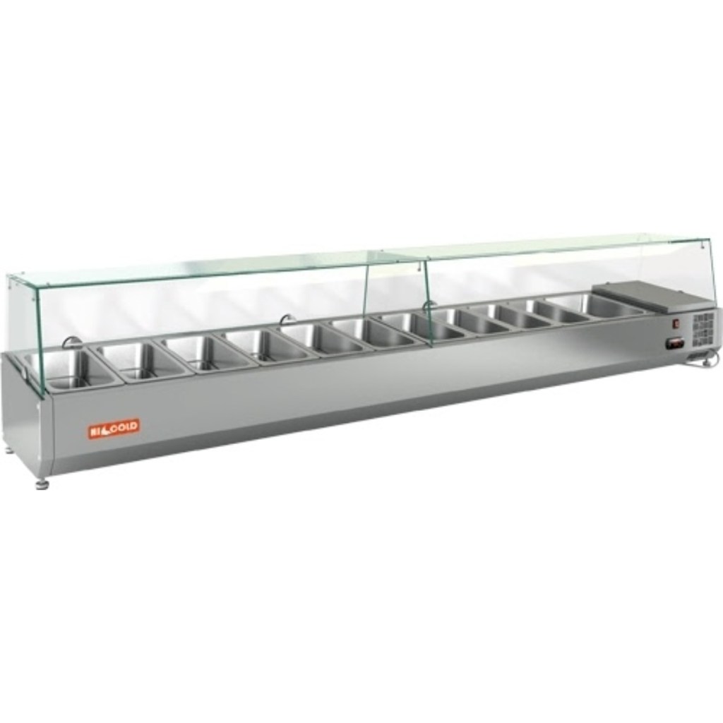 Каталог оборудования Холодильное оборудованиеВитрины для ингредиентовВитрина холодильная для ингредиентов HICOLD VRTG 2360 к PZ3 (1/3) Витрина холодильная для ингредиентов HICOLD VRTG 2360 к PZ3 (1/3) Код товара: 064-659 Поделиться: WhatsAppTelegram СравнитьДобавить в КПВ избранное 0 89 578 ₽ В корзину 0 шт Под заказСамовывоз сегодня бесплатно Взять в кредит Купить в лизинг Получить консультацию в WhatsApp Описание Характеристики Отзывы 0 Инструкции 3 Витрина холодильная для ингредиентов HICOLD VRTG 2360 к PZ3 (1/3) предназначена для охлаждения, кратковременного хранения и демонстрации ингредиентов, салатов и готовых блюд на предприятиях общественного питания и торговли. Устанавливается на холодильные столы для пиццы серии PZ4 благодаря встроенным креплениям в нижней части корпуса. На фото показана аналогичная модель с настольной установкой. Ключевые особенности: Корпус из нержавеющей стали — долговечность, простота ухода. Электронная панель управления — точная регулировка температуры. Исполнение G — стеклянная надстройка для удобного обзора продуктов. Высота витрины — 459 мм — компактное размещение на рабочей поверхности. Вместимость: 10xGN1/3 + 1xGN1/2 — рациональная организация хранения (гастроёмкости приобретаются отдельно). Совместимые модели столов: PZ4-111/GN HICOLD VRTG 2360 к PZ3 (1/3)— это профессиональная настольная витрина, которая сочетает компактные размеры, современное управление и высокое качество охлаждения. Отличный выбор для пиццерий, ресторанов и кафе, где важны удобство доступа, скорость работы и эффектная подача продуктов.Изображение товара, представленного на фото, может отличаться от его фактического вида. Показать все Габаритные размеры2360×385×459 ммДиапазон рабочей температурыот +2 до +7 °CДлина2360 ммГлубина385 ммВысота459 ммТип крышкиСтеклянная Гастроемкостей11 штТип гастроемкостейGN1/3, GN1/2 Мощность0,15 ВтНапряжение220 ВТип охлажденияСтатическое Материал изготовленияНержавеющая сталь ХладагентR134 Вес нетто67 кгВес брутто107 кгТип оттайкиРучная Габариты в упаковке2460×485×559 ммБрендHicold Оставить отзыв Еще никто не оставил отзыв на этот товар Инструкция на HICOLD VRTG 2360 к PZ3.pdfСхема установки на стол.jpgДекларация о соответствии.pdf Похожие товары Перейти в каталог Под заказ 66 844 ₽ Витрина холодильная для ингредиентов HICOLD VRTG 1525 1/3 Под заказ 67 060 ₽ Витрина холодильная для ингредиентов HICOLD VRX 1800 1/4 В наличии 44 919 ₽ Витрина холодильная для ингредиентов HICOLD VRTO 1000 В наличии 53 290 ₽ Витрина холодильная для ингредиентов HICOLD VRTU 1390 к PZ3 (1/3) Под заказ 59 932 ₽ Витрина холодильная для ингредиентов HICOLD VRTU 1915 1/3 Под заказ 53 937 ₽ Витрина холодильная для ингредиентов HICOLD VRTU 1425 к PZ4 (1/3) Под заказ 62 956 ₽ Витрина холодильная для ингредиентов HICOLD VRTG 1485 1/4 В наличии 50 177 ₽ Витрина холодильная для ингредиентов Tatra TVR1400-6GN1/3 С этим товаром покупают Под заказ 112 617 ₽ Шкаф морозильный МХМ Капри 0,5Н нержавейка Под заказ 215 900 ₽ Камера холодильная АСК-холод КХ-11,59 (2260х2560х2460) Под заказ 90 392 ₽ Моноблок холодильный среднетемпературный Север MGM 110 S Пульт в комплектеПод заказ 84 150 ₽ Сплит-система холодильная низкотемпературная Арктика СМH 106 В наличии 161 361 ₽ Стол холодильный среднетемпературный HiCold BN 12 BR2 TN Под заказ 108 783 ₽ Стол морозильный HURAKAN HKN-GN2BT В наличии 269 424 ₽ Стол холодильный для пиццы TEFCOLD PT1365 Под заказ 112 606 ₽ Шкаф холодильный Север ШХ-1000 СТ/КС Ранее просмотрено В наличии 57 825 ₽ Витрина холодильная для ингредиентов HICOLD VR
