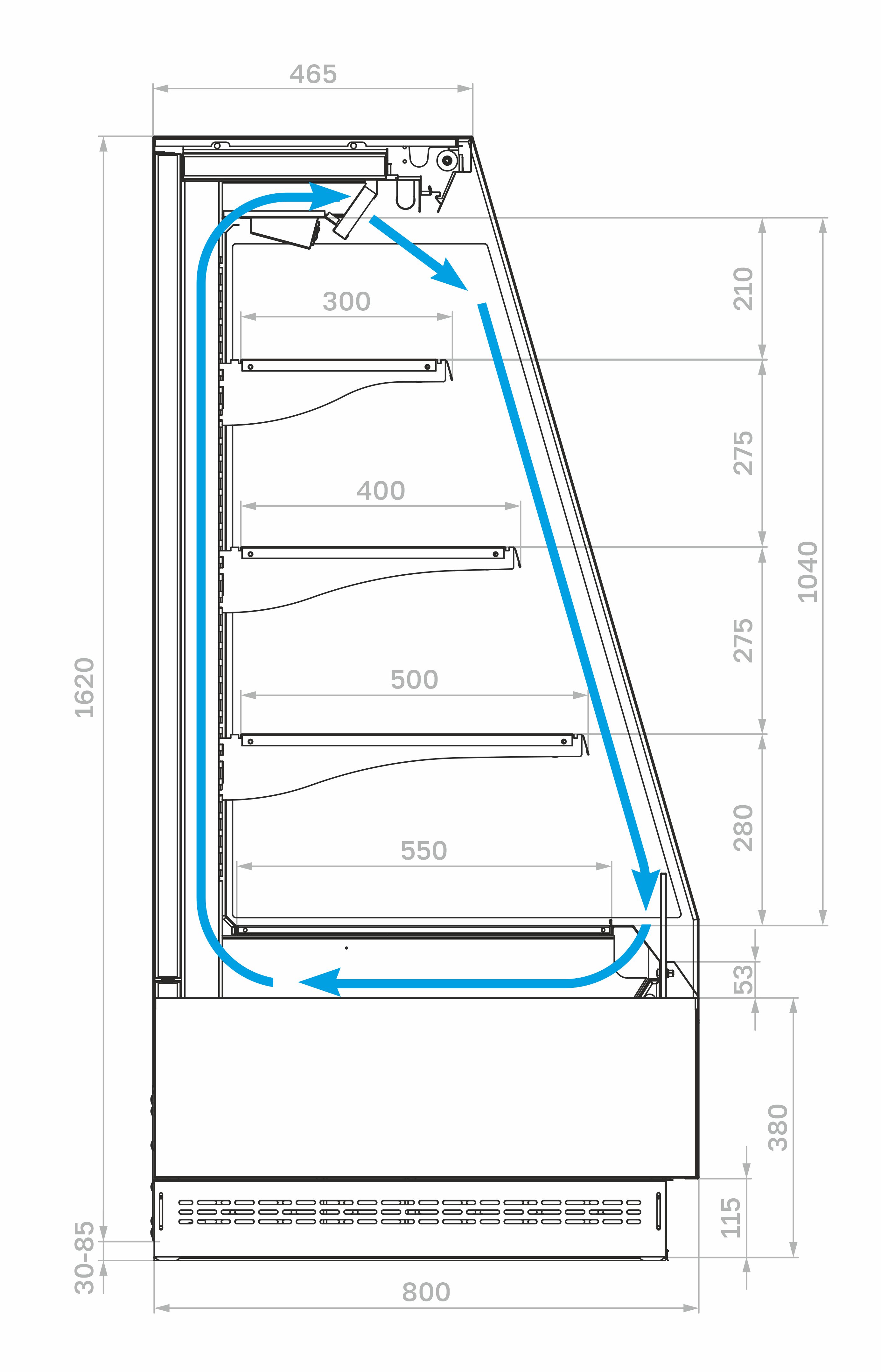 • Боковины – прозрачные стеклопакеты для энергосбережения и оптимального обзора продукции.