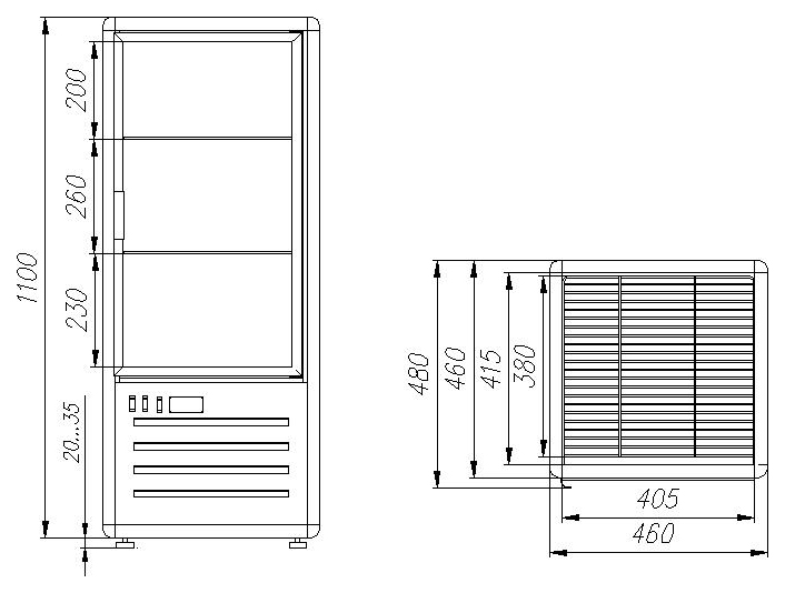 2 металлические полки-решётки – прочность и удобство размещения продукции;