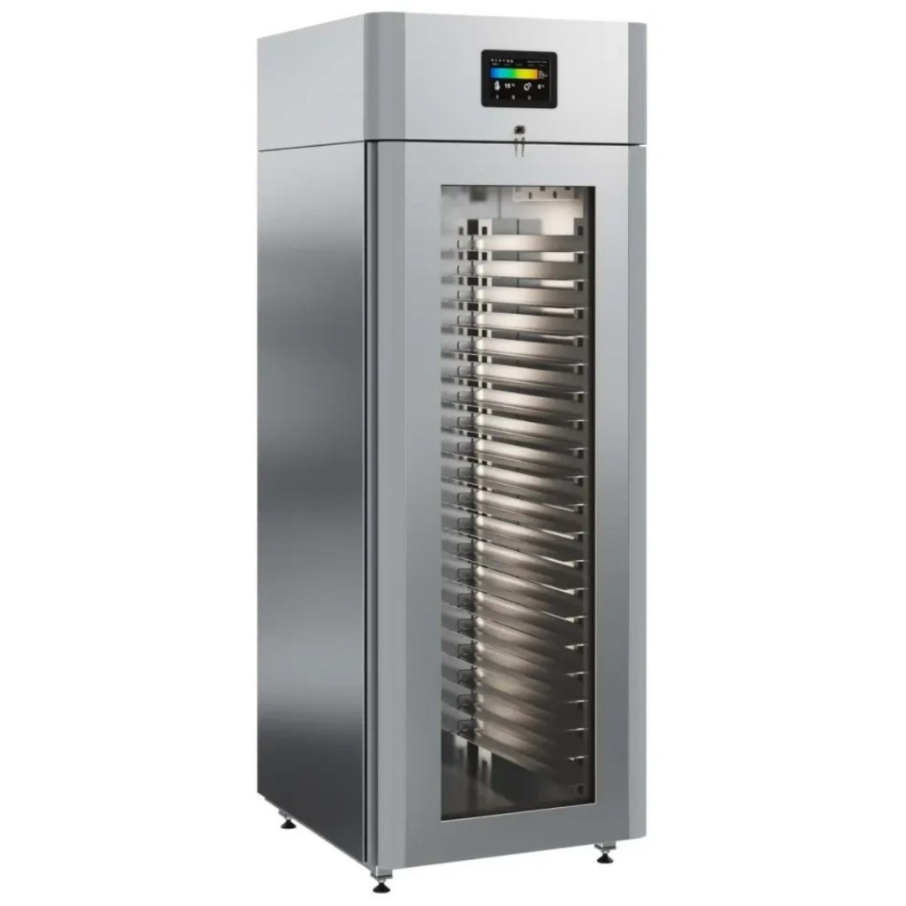 Каталог оборудования Холодильное оборудованиеШкафы холодильныеСпециализированные холодильные шкафыШкаф холодильный для хлебопекарных производств Polair CS107-Bakery Br со стеклом (Тип 1) Шкаф холодильный для хлебопекарных производств Polair CS107-Bakery Br со стеклом (Тип 1) Код товара: 062-622 Поделиться: WhatsAppTelegram СравнитьДобавить в КПВ избранное 0 414 545 ₽ В корзину 0 шт Под заказСамовывоз сегодня бесплатно Взять в кредит Купить в лизинг Получить консультацию в WhatsApp Описание Характеристики Отзывы 0 Инструкции 5 Шкаф холодильный для хлебопекарных производств Polair CS107-Bakery Br со стеклом (Тип 1) предназначен для создания оптимальных условий хранения и расстойки заготовок из теста на предприятиях общественного питания и торговли. Цельнозаливной корпус выполнен из нержавеющей стали, дверь — стеклопакет. Оборудование стабильно работает при температуре окружающей среды до +40 °C. В комплект входят 20 пар направляющих размером 400×600 мм. Особенности: Широкий функционал: охлаждение, замедление ферментации, хранение, регенерация, брожение и расстойка Динамическое охлаждение с мягким обдувом без заветривания и автоматическая оттайка с системой испарения конденсата Панель управления с 5" дисплеем: контроль температуры, влажности (регулируется от 60 до 95 %), скорости вентилятора и времени, а также возможность создания и сохранения программ Встроенный ультразвуковой увлажнитель (необходима система водоочистки и канализация) Эргономичная конструкция: верхнее расположение агрегата, распашная дверь со стеклопакетом, механизм самозакрывания, педаль для открытия, съёмные направляющие и легко заменяемый уплотнитель с магнитной вставкой Дополнительная защита: пластиковый бордюр по периметру камеры для предотвращения повреждений от тележек Простота ухода: штампованное углубление в дне корпуса для сбора загрязнений Экологичный хладагент R290 и энергоэффективность: потребляемая мощность — 0,55 кВт (охлаждение), 0,9 кВт (нагрев) Толщина стенки корпуса — 43 мм Polair CS107-Bakery Br со стеклом (Тип 1) — надёжный и многофункциональный шкаф, который обеспечивает полное управление процессами брожения и расстойки теста. Современная система охлаждения и увлажнения, продуманная конструкция и удобное управление делают его оптимальным решением для пекарен и кондитерских, стремящихся к стабильному качеству и высокой производительности.Изображение товара, представленного на фото, может отличаться от его фактического вида. Показать все Габаритные размеры697×1005×1960 ммДиапазон рабочей температурыот -10 до +40 °CДлина697 ммШирина1005 ммВысота1960 ммОбъём700 лКол-во дверей1 Тип двериСтеклянная Уровень влажностиот 60 до 95 %Направляющие под EN 40*6020 Расстояние между направляющими60 ммХолодильный агрегатВстроенный Тип оттайкиАвтоматическая Тип охлажденияДинамический ПодсветкаЕсть ХладагентR290 Вес нетто180 кгБрендPolairВсе специализированные холодильные шкафы Из нержавейки Оставить отзыв Еще никто не оставил отзыв на этот товар Схема POLAIR CS107 Bakery Br.jpgИнструкция на POLAIR CS107 Bakery Br.pdfБрошюра на хлебопекарное оборудование POLAIR.pdfДекларация о соответствии.pdfСертификат соответствия.pdf Похожие товары Перейти в каталог Под заказ 405 450 ₽ Шкаф холодильный для хлебопекарных производств Polair CS107 Bakery Br черный, со стеклом (Тип 1) Под заказ 385 475 ₽ Шкаф холодильный для вызревания сыра Polair CS107 Cheese полки окраш. Под заказ 391 000 