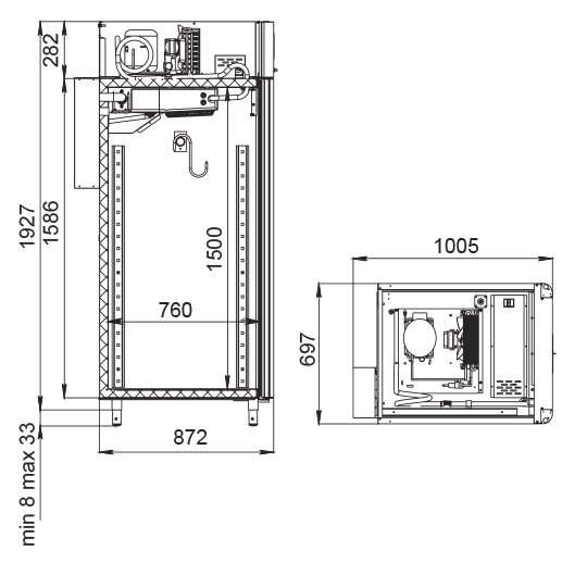 Каталог оборудования Холодильное оборудованиеШкафы холодильныеСпециализированные холодильные шкафыШкаф холодильный для вызревания мяса Polair CS107 Meat со стеклом (Тип 2) Шкаф холодильный для вызревания мяса Polair CS107 Meat со стеклом (Тип 2) Код товара: 062-629 Поделиться: WhatsAppTelegram СравнитьДобавить в КПВ избранное 0 402 050 ₽ В корзину 0 шт Под заказСамовывоз сегодня бесплатно Взять в кредит Купить в лизинг Получить консультацию в WhatsApp Описание Характеристики Отзывы 0 Инструкции 5 Шкаф холодильный для вызревания мяса Polair CS107 Meat со стеклом (Тип 2) для обеспечения оптимальных условий хранения и дозревания мяса на предприятиях общественного питания и торговли. Монолитный цельнозаливной корпус выполнен из нержавеющей стали снаружи и внутри (за исключением задней стенки), что гарантирует высокую механическую прочность, устойчивость к коррозии и гигиеничность. Дверь оснащена стеклопакетом для удобного визуального контроля. Оборудование рассчитано на работу при температуре окружающей среды до +40 °С. Особенности: Верхнее расположение агрегата, обеспечивающее эффективное распределение холода и легкий доступ к обслуживанию Многофункциональная русифицированная панель управления с цветным дисплеем диагональю 5", позволяющая точно настраивать режимы и контролировать все параметры работы Возможность создания и сохранения индивидуальных программ, что обеспечивает гибкость при работе с разными видами мяса 4 перфорированные полки из нержавеющей стали, каждая с максимальной нагрузкой до 40 кг, для удобного размещения продукции Встроенный ультразвуковой увлажнитель (требуется подключение к системе подачи очищенной воды и к централизованной канализации) для поддержания стабильного уровня влажности и предотвращения пересыхания продукта UV-лампа для обеззараживания воздуха, которая снижает риск размножения патогенной микрофлоры и обеспечивает безопасность хранения Распашная дверь с заливной теплоизоляцией, встроенной ручкой и сменным магнитным уплотнителем, обеспечивающим плотное закрытие Отключаемая LED-подсветка, которая делает внутреннее пространство хорошо освещённым и удобным для работы Штампованное углубление в дне корпуса для упрощения уборки и отвода конденсата Педаль для открытия двери без помощи рук, повышающая гигиеничность и удобство Толщина стенок корпуса: 43 мм Polair CS107 Meat со стеклом (Тип 2) — это профессиональное решение для хранения и созревания мяса, которое сочетает продуманную конструкцию и современные технологии. Четкая система управления, продвинутый контроль климата, качественные материалы и высокая функциональность позволяют гарантировать идеальные условия для продукции, способствуя повышению качества и рентабельности работы предприятия.Изображение товара, представленного на фото, может отличаться от его фактического вида. Показать все Габаритные размеры697×1005×1960 ммДиапазон рабочей температурыот -2 до +30 °CДлина697 ммШирина1005 ммВысота1960 ммОбъём700 лКол-во дверей1 Тип двериСтеклянная Количество полок4 штДопустимая нагрузка на полку40 кгУровень влажностиот 60 до 95 %Холодильный агрегатВстроенный Тип оттайкиАвтоматическая Тип охлажденияДинамическое ПодсветкаЕсть UV-лампаЕсть ХладагентR290 Вес нетто160 кгВес брутто190 кгБрендPolairВсе специализированные холодильные шкафы Из нержавейкиВсе специализированные холод