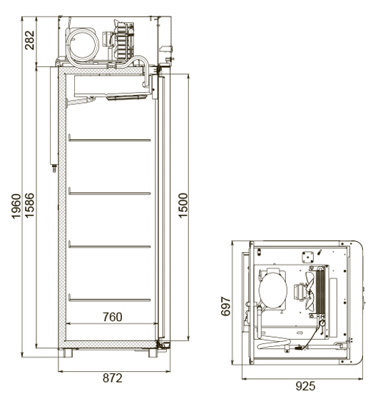 Каталог оборудования Холодильное оборудованиеШкафы холодильныеШкафы холодильные универсальные от -5 до +5 °СШкаф холодильный универсальный Polair CV107-Gm Alu Шкаф холодильный универсальный Polair CV107-Gm Alu Код товара: 062-610 Поделиться: WhatsAppTelegram СравнитьДобавить в КПВ избранное 0 149 175 ₽ В корзину 0 шт Под заказСамовывоз сегодня бесплатно Взять в кредит Купить в лизинг Получить консультацию в WhatsApp Описание Характеристики Отзывы 0 Инструкции 4 Шкаф холодильный универсальный Polair CV107-Gm Alu предназначен для демонстрации и надежного хранения продуктов на предприятиях общественного питания и торговли. Корпус шкафа цельнозаливной, выполнен из прочной стали с полимерным покрытием, что гарантирует высокую механическую прочность и длительный срок службы. Алюминиевые профили дверей и верхней панели подчеркивают современный, премиальный дизайн. Оборудование эффективно работает при температуре окружающей среды до 40 °С и влажности воздуха до 80%. Особенности модели: Многофункциональная контрольная панель (терморегулятор) для удобного управления параметрами. Жидкокристаллический дисплей, обеспечивающий чёткое отображение настроек и информации о работе шкафа. Клапан Шредера для удобного обслуживания холодильного контура. Распашной тип двери для легкого доступа к продуктам. Возможность изменить сторону открывания двери (при наличии опции), что делает установку более универсальной. Полностью интегрированные в профили дверей ручки, подчеркивающие стильный внешний вид и удобство использования. Встроенная светодиодная подсветка для отличной видимости содержимого шкафа. Надежный замок для защиты продуктов. Педаль для удобного открывания двери без использования рук. Высокая допустимая нагрузка на полку — до 40 кг, что позволяет хранить большие объемы продукции. Размер полки: GN 2/1 (530×650 мм), подходит для стандартных гастроемкостей. Толщина стенки корпуса — 43 мм, обеспечивающая отличную теплоизоляцию и снижение энергопотерь. Polair CV107-Gm Alu — это функциональный и стильный холодильный шкаф, который сочетает надежность, эргономичный дизайн и удобство эксплуатации. Использование прочных материалов и продуманная конструкция делают его идеальным решением для профессиональной кухни или торгового зала.Изображение товара, представленного на фото, может отличаться от его фактического вида. Показать все Габаритные размеры697×925×1960 ммДиапазон рабочей температурыот -5 до +5 °CДлина697 ммГлубина925 ммВысота695 ммОбъём700 лРазмер полки530×650 ммКоличество полок4 штКоличество дверей1 штТип оттайкиАвтоматическая Тип охлажденияДинамическое Тип управленияЭлектронное Материал корпусаНержавеющая сталь Тип двериМеталлическая ЗамокЕсть Способ открыванияРаспашные ХладагентR290 Холодильный агрегатВстроенный Расположение агрегатаВерхнее Потребление электроэнергии в сутки4,5 кВтПотребляемая мощность0,4 кВтНапряжение220 ВГабариты в упаковке800×1000×2150 ммВес нетто115 кгВес брутто140 кгБрендPolairВсе шкафы холодильные универсальные от -5 до +5 °С Из нержавейки Оставить отзыв Еще никто не оставил отзыв на этот товар Схема POLAIR CV107-Gm Alu.jpgИнструкция на POLAIR CV107-Gm Alu.pdfДекларация о соответствии.pdfСертификат соответствия.pdf Похожие товары Перейти в каталог Под заказ 138 978 ₽ Шкаф холодильный универсальный МХМ Капри ШХ 1,5 УМВ В наличии 136 195 ₽ Шкаф холодильный универсальный Север ШХ-1400 УН/ГЛ П
