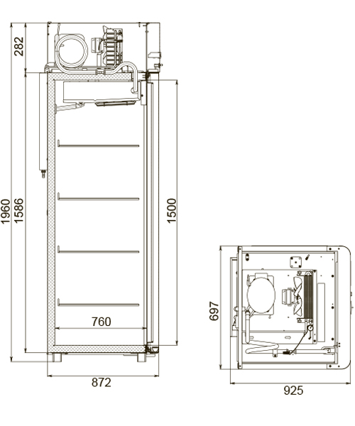 Каталог оборудования Холодильное оборудованиеШкафы холодильныеШкафы холодильные универсальные от -5 до +5 °СШкаф холодильный универсальный Polair CV107-Sm Alu Шкаф холодильный универсальный Polair CV107-Sm Alu Код товара: 062-611 Поделиться: WhatsAppTelegram СравнитьДобавить в КПВ избранное 0 131 527 ₽ В корзину 0 шт Под заказСамовывоз сегодня бесплатно Взять в кредит Купить в лизинг Получить консультацию в WhatsApp Описание Характеристики Отзывы 0 Инструкции 4 Шкаф холодильный универсальный Polair CV107-Sm Alu предназначен для демонстрации и надежного хранения продуктов на предприятиях общественного питания и торговли. Цельнозаливной корпус выполнен из стали с полимерным покрытием и оснащен алюминиевыми профилями, что обеспечивает высокую прочность конструкции и долговечность, а также подчеркивает современный премиальный дизайн. Шкаф работает при температуре окружающей среды до 40 °С и влажности воздуха до 80%. Особенности модели: Контрольная панель с быстрым доступом к настройкам, удобным возвратом в предыдущее меню и возможностью полного отключения без отдельной кнопки. Жидкокристаллический дисплей для наглядного отображения параметров. Клапан Шредера для обслуживания холодильной системы. Компенсационный клапан с ПЭНом обогрева, ПЭНы обогрева трубки слива конденсата и дверного проема — предотвращают образование льда и обеспечивают надежную работу. Распашной тип двери с возможностью изменения стороны открывания, что делает установку более гибкой. Полностью интегрированные ручки, удобные и стильные. Эластичные уплотнители с магнитными вставками для максимальной герметизации. Внутренняя подсветка вынесена на нижнюю часть фронтальной панели. Микропереключатель для автоматического отключения вентилятора и включения подсветки при открытии дверей. Регулируемые по высоте ножки для устойчивости на любом полу. Педаль для удобного открывания без рук. Замок для защиты содержимого. Высокая допустимая нагрузка на полку — до 40 кг. Размер полки: GN 2/1 (530×650 мм). Толщина стенки корпуса — 43 мм, что обеспечивает отличную теплоизоляцию. Polair CV107-Sm Alu — это функциональный и надежный холодильный шкаф с современным дизайном, который обеспечивает максимальную сохранность и удобный доступ к продуктам. Отлично подходит для ресторанов, кафе и магазинов, где важны надежность, стиль и энергоэффективность.Изображение товара, представленного на фото, может отличаться от его фактического вида. Показать все Габаритные размеры697×925×1960 ммДиапазон рабочей температурыот -5 до +5 °CДлина697 ммГлубина925 ммВысота1960 ммОбъём700 лРазмер полки530×650 ммКоличество полок4 штКоличество дверей1 штТип оттайкиАвтоматическая Тип охлажденияДинамическое Тип управленияЭлектронное Материал корпусаНержавеющая сталь Тип двериМеталлическая ЗамокЕсть Способ открыванияРаспашные ХладагентR290 Холодильный агрегатВстроенный Расположение агрегатаВерхнее Потребление электроэнергии в сутки4,5 кВтПотребляемая мощность0,4 кВтНапряжение220 ВГабариты в упаковке800×1000×2150 ммВес нетто113 кгВес брутто138 кгБрендPolairВсе шкафы холодильные универсальные от -5 до +5 °С Из нержавейки Оставить отзыв Еще никто не оставил отзыв на этот товар Схема POLAIR CV107-Sm.jpgИнструкция на POLAIR CV107-Sm.pdfДекларация о соответствии.pdfСертификат соответствия.pdf Похожие товары Перейти в каталог В наличии 145 129 ₽ Шкаф холодильный универсальный Polair
