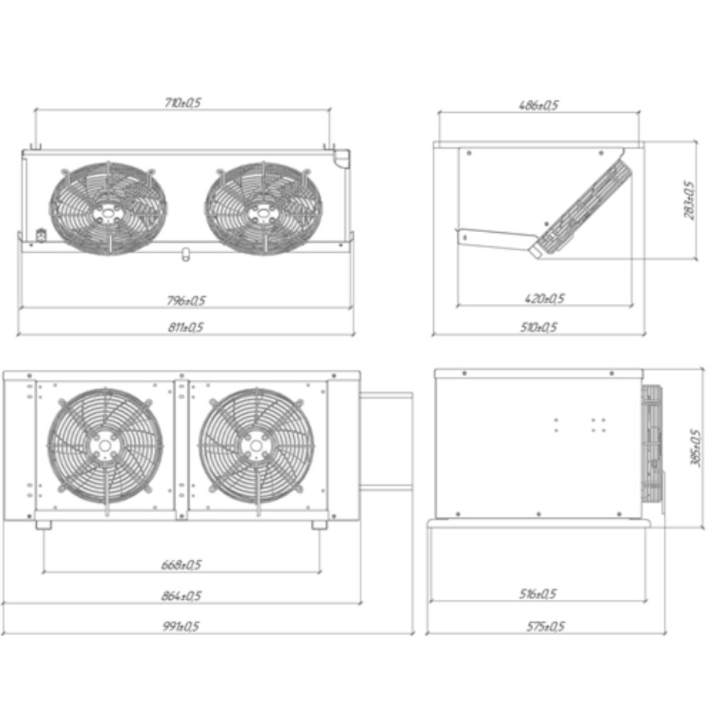 • Двойные осевые вентиляторы (2×250 мм) с расходом воздуха 1200 м³/ч — эффективное распределение холодного воздуха.
