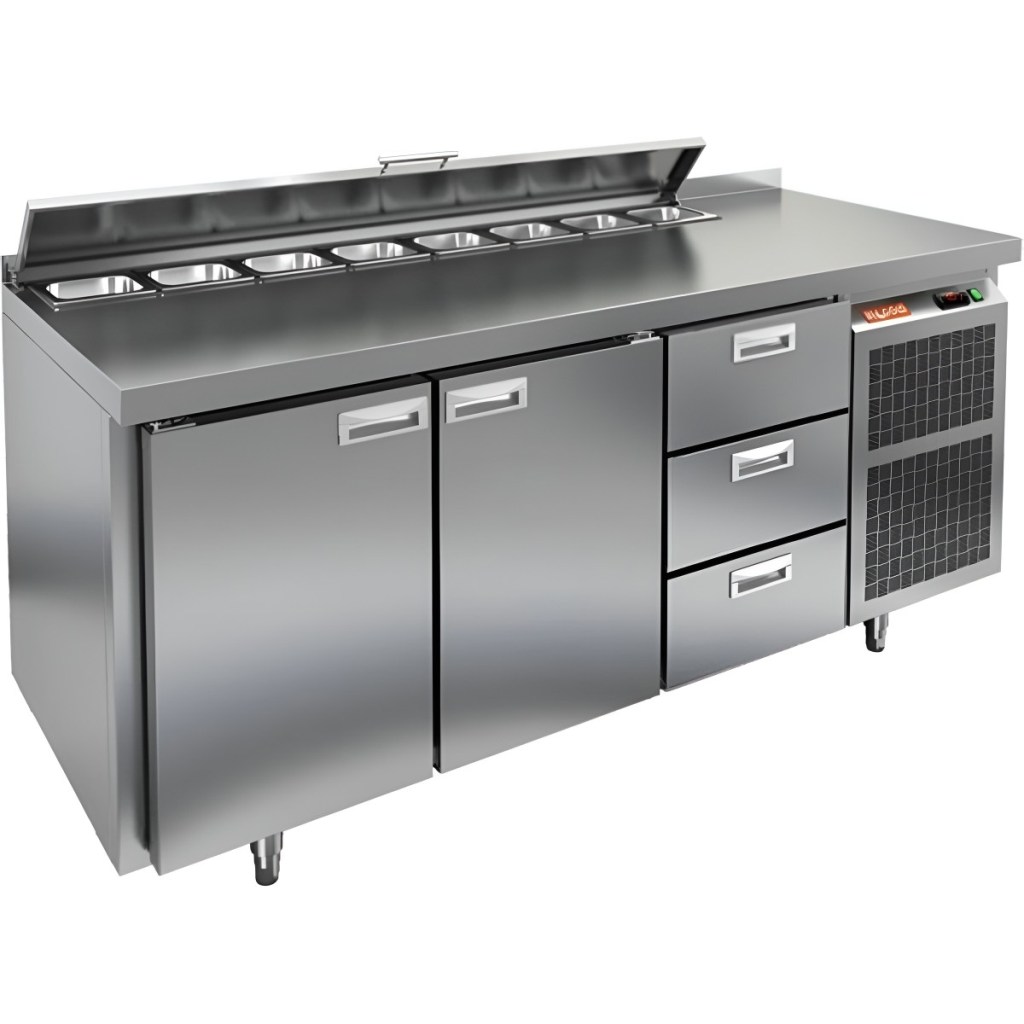 Каталог оборудования Холодильное оборудованиеСтолы охлаждаемыеСтолы холодильные для салатовСтол холодильный для салатов HiCold SL1-113GN (1/3) с крышкой Стол холодильный для салатов HiCold SL1-113GN (1/3) с крышкой Код товара: 064-842 Поделиться: WhatsAppTelegram СравнитьДобавить в КПВ избранное 0 214 192 ₽ В корзину 0 шт Под заказСамовывоз сегодня бесплатно Взять в кредит Купить в лизинг Получить консультацию в WhatsApp Описание Характеристики Отзывы 0 Стол холодильный для салатов HiCold SL1-113GN (1/3) предназначен для использования на предприятиях общественного питания и торговли. Он объединяет рабочую поверхность и охлаждаемый отсек, что делает его удобным решением для хранения, охлаждения и подготовки ингредиентов при приготовлении салатов, пиццы и других блюд. Такая конструкция позволяет повару работать быстрее и эффективнее, так как все необходимые продукты находятся под рукой. Корпус и столешница выполнены из прочной нержавеющей стали, устойчивой к коррозии и легко поддающейся санитарной обработке. Металлическая крышка защищает продукты от загрязнений и сохраняет их свежесть. Особенности модели: Электронная панель управления — точная настройка температурного режима. 2 глухие двери — удобный доступ к холодильному отсеку. 3 выдвижных ящика — быстрое размещение и замена продуктов. Вместимость салат-бара — до 8 гастроемкостей глубиной до 100 мм. Автоматические доводчики дверей с фиксацией в открытом положении. Легкозаменяемые магнитные уплотнители — надежная герметичность. Открытая агрегатная часть — быстрый доступ для обслуживания. Регулируемые по высоте ножки — устойчивость даже на неровном полу. Толщина столешницы, борта и теплоизоляции — 50 мм, что обеспечивает прочность и энергоэффективность конструкции. HiCold SL1-113GN (1/3) — практичное и удобное решение для профессиональной кухни, обеспечивающее удобную подготовку и хранение ингредиентов.Изображение товара, представленного на фото, может отличаться от его фактического вида. Показать все Габаритные размеры1835×700×850 ммДиапазон рабочей температурыот +2 до +10 °CРасположение агрегатаБоковое Материал столешницыНержавеющая Тип столаС дверьми и ящиками Тип двериГлухая Объём505 лКоличество дверей2 штТип гастроемкостейGN 1/3 Количество ящиков3 штРазмер полки530×325 ммНапряжение220 ВМощность0,46 кВтТип охлажденияДинамическое Тип оттайкиАвтоматическая СтолешницаС бортом Вес нетто120 кгВес брутто140 кгБрендHicold Оставить отзыв Еще никто не оставил отзыв на этот товар Ранее просмотрено Под заказ 172 161 ₽ Стол холодильный для салатов HiCold SLE1-11111GN (1/3) О с крышкой