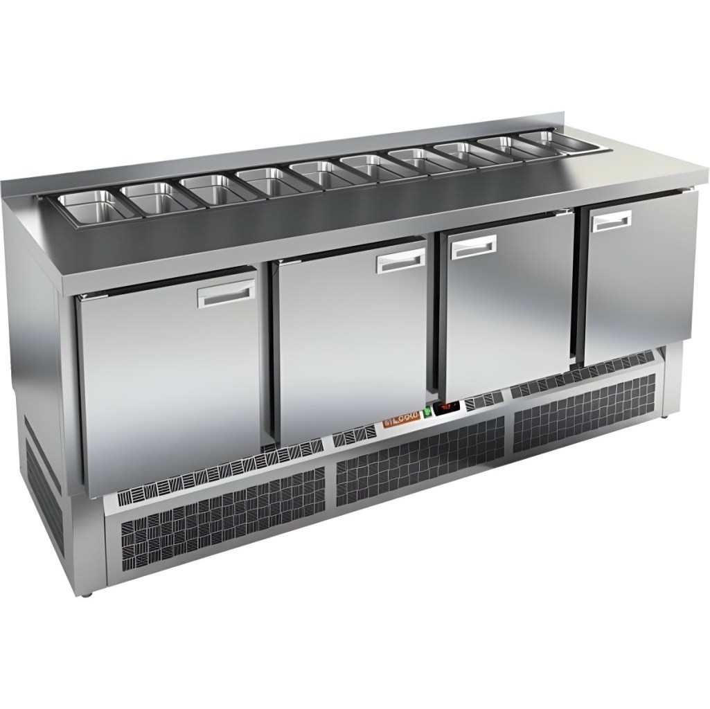 Каталог оборудования Холодильное оборудованиеСтолы охлаждаемыеСтолы холодильные для салатовСтол холодильный для салатов HiCold SLE1-1111SN (1/3) без крышки Стол холодильный для салатов HiCold SLE1-1111SN (1/3) без крышки Код товара: 064-546 Поделиться: WhatsAppTelegram 0 Цена по запросу Получить консультацию в WhatsApp Описание Характеристики Отзывы 0 Инструкции 2 Стол холодильный для салатов HiCold SLE1-1111SN (1/3) без крышки предназначен для предприятий общественного питания и торговли. Он позволяет хранить и обрабатывать ингредиенты для пиццы, салатов и других блюд, а также охлаждать и кратковременно хранить скоропортящиеся продукты и напитки. Модель совмещает рабочую поверхность и охлаждаемый объем, что обеспечивает удобство работы повара: все необходимые компоненты всегда под рукой. Корпус и столешница выполнены из нержавеющей стали, что гарантирует долговечность и простоту ухода. Особенности: Динамическая система охлаждения — равномерное распределение температуры по всему объему. Автоматическая оттайка — упрощает уход за оборудованием. Электронная панель управления — удобная настройка температуры и режимов работы. 4 вместительные внутренние полки формата GN 1/1 — оптимальное хранение ингредиентов. Автоматические доводчики дверей с фиксатором открытого положения — комфорт и безопасность работы. Легкозаменяемые магнитные уплотнители — простота обслуживания. Открытая агрегатная часть — облегчает доступ для обслуживания. Регулируемые по высоте ножки — адаптация к рабочей поверхности. Размер полки: 430×325 мм (GN 1/1) Максимальная глубина гастроемкостей: 100 мм Столешница с бортом, без крышки: толщина столешницы и теплоизоляции — 50 мм, высота борта — 50 мм HiCold SLE1-1111SN (1/3) без крышки — надежный и удобный стол для профессиональной кухни. Он обеспечивает эффективное охлаждение и хранение ингредиентов, а комбинированная рабочая поверхность с холодильным объемом упрощает работу повара, делая процесс приготовления быстрее и удобнее.Изображение товара, представленного на фото, может отличаться от его фактического вида. Показать все Габаритные размеры1970×700×800 ммДиапазон рабочей температурыот +2 до +10 °CРасположение агрегатаНижнее Материал столешницыНержавеющая Тип столаС дверьми Тип двериГлухая Объём430 лКоличество дверей4 штТип гастроемкостейGN 1/3 Размер полки430×325 ммНапряжение220 ВМощность0,46 кВтТип охлажденияДинамический Тип оттайкиАвтоматическая СтолешницаС бортом Вес нетто131 кгВес брутто185 кгБрендHicold Оставить отзыв Еще никто не оставил отзыв на этот товар Паспорт на HICOLD SLE1-1111SN (1/3).pdfДекларация о соответствии.pdf Ранее просмотрено Под заказ 212 662 ₽ Стол холодильный для салатов HiCold SLS2-22GN (1/6) с крышкой