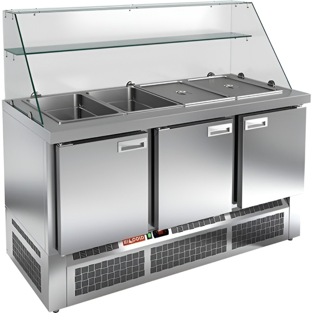 HiCold SLE3-111GN высокое стекло — надёжный и удобный в эксплуатации салатный стол, который обеспечит оптимальные условия хранения ингредиентов и повысит эффективность работы кухни. Он подойдёт для любого формата заведений общественного питания, где требуется быстрый доступ к охлаждённым продуктам.