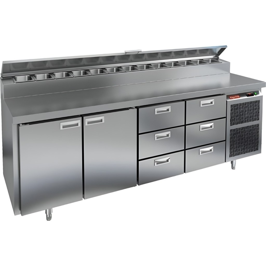 Каталог оборудования Холодильное оборудованиеСтолы охлаждаемыеСтолы холодильные для пиццыСтол холодильный для пиццы HiCold PZ2-1133GN (1/6) Стол холодильный для пиццы HiCold PZ2-1133GN (1/6) Код товара: 064-759 Поделиться: WhatsAppTelegram СравнитьДобавить в КПВ избранное 0 342 442 ₽ В корзину 0 шт Под заказСамовывоз сегодня бесплатно Взять в кредит Купить в лизинг Получить консультацию в WhatsApp Описание Характеристики Отзывы 0 Стол холодильный для пиццы HiCold PZ2-1133GN (1/6) предназначен для кухонь и предприятий общественного питания. Он используется для раскатки теста, подготовки ингредиентов для пиццы, салатов и других блюд, а также для охлаждения и кратковременного хранения скоропортящихся продуктов. Модель совмещает нержавеющую рабочую поверхность и охлаждаемый отсек с 2 дверьми и 6 ящиками, обеспечивая удобный доступ к ингредиентам и эффективное хранение. Особенности: Динамическая система охлаждения для равномерного поддержания температуры Автоматическая оттайка для удобного обслуживания Электронная панель управления для точной настройки параметров Вместительная внутренняя полка формата GN 1/1 (размер 530×325 мм) 2 двери и 6 вместительных ящика для хранения ингредиентов Автоматические доводчики дверей с фиксатором открытого положения Легкозаменяемые магнитные уплотнители для герметичности Открытая агрегатная часть для легкого доступа к компонентам Регулируемые по высоте ножки для устойчивости Нержавеющая столешница глубиной 486 мм и толщиной 50 мм — устойчива к коррозии, легко моется и гигиенична Толщина теплоизоляции: 50 мм Максимальная глубина гастроемкостей: 100 мм Вместимость салат-бара: 13 гастроемкости Стол холодильный HiCold PZ2-1133GN (1/6) — это надежный и функциональный стол для пиццы. Он объединяет рабочую поверхность и охлаждаемый отсек, упрощает хранение и подготовку ингредиентов, обеспечивает удобство работы повара и соответствует стандартам профессиональной кухни. Изображение товара, представленного на фото, может отличаться от его фактического вида. Показать все Габаритные размеры2280×700×1000 ммДиапазон рабочей температурыот +2 до +10 °CРасположение агрегатаБоковое Материал столешницыНержавеющая Тип столаС дверьми и ящиками Тип двериГлухая Объём660 лТип гастроемкостейGN 1/6 Количество дверей2 штКоличество ящиков6 штРазмер полки530×325 ммНапряжение220 ВМощность0,5 кВтТип охлажденияДинамическое Тип оттайкиАвтоматическая Габариты в упаковке2420×850×1080 ммВес нетто208 кгВес брутто240 кгБрендHicoldВсе холодильные столы для пиццы HicoldВсе нержавеющие холодильные столы для пиццы Оставить отзыв Еще никто не оставил отзыв на этот товар Ранее просмотрено Под заказ 306 171 ₽ Стол холодильный для пиццы HiCold PZ2-222GN (1/6) Под заказ 250 642 ₽ Стол холодильный для пиццы HiCold PZ1-1111GN (1/3)