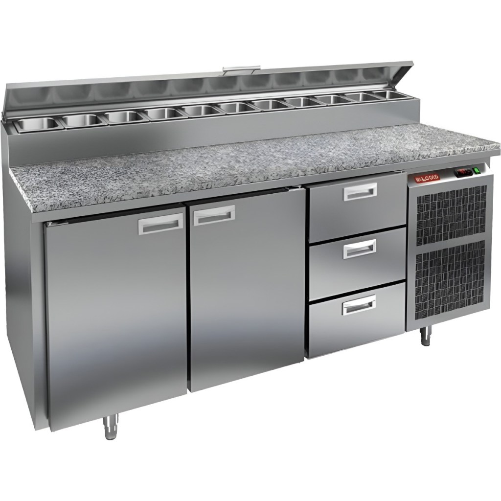 Каталог оборудования Холодильное оборудованиеСтолы охлаждаемыеСтолы холодильные для пиццыСтол холодильный для пиццы HiCold PZ2-113GN (1/6) камень Стол холодильный для пиццы HiCold PZ2-113GN (1/6) камень Код товара: 064-762 Поделиться: WhatsAppTelegram СравнитьДобавить в КПВ избранное 0 292 761 ₽ В корзину 0 шт Под заказСамовывоз сегодня бесплатно Взять в кредит Купить в лизинг Получить консультацию в Max Описание Характеристики Отзывы 0 Инструкции 2 Стол холодильный для пиццы HiCold PZ2-113/GN (1/6) камень предназначен для кухонь и предприятий общественного питания. Он используется для раскатки теста, подготовки ингредиентов для пиццы, салатов и других блюд, а также для охлаждения и кратковременного хранения скоропортящихся продуктов. Модель совмещает гранитную рабочую поверхность и охлаждаемый отсек с 2 дверьми и 3 ящиками, обеспечивая удобный доступ к ингредиентам и эффективное хранение. Особенности: Динамическая система охлаждения для равномерного поддержания температуры Автоматическая оттайка для удобного обслуживания Электронная панель управления для точной настройки параметров Вместительная внутренняя полка формата GN 1/1 (размер 530×325 мм) 2 двери и 3 вместительных ящика для хранения ингредиентов Автоматические доводчики дверей с фиксатором открытого положения Легкозаменяемые магнитные уплотнители для герметичности Открытая агрегатная часть для легкого доступа к компонентам Регулируемые по высоте ножки для устойчивости Гранитная рабочая поверхность глубиной 486 мм и толщиной 50 мм — устойчива к повреждениям, высоким температурам и царапинам Толщина теплоизоляции: 50 мм Максимальная глубина гастроемкостей: 100 мм Вместимость салат-бара: 11 гастроемкости Стол холодильный HiCold PZ2-113/GN (1/6) камень — это надёжный и функциональный стол для пиццы. Он сочетает рабочую поверхность и охлаждаемый отсек, облегчает хранение и подготовку ингредиентов, повышает удобство работы повара и соответствует стандартам профессиональной кухни.Изображение товара, представленного на фото, может отличаться от его фактического вида. Показать все Габаритные размеры1835×700×1000 ммДиапазон рабочей температурыот +2 до +10 °CРасположение агрегатаБоковое Материал столешницыГранитная Тип столаС дверьми и ящиками Тип двериГлухая Объём505 лТип гастроемкостейGN 1/6 Количество дверей2 штКоличество ящиков3 штРазмер полки530×325 ммНапряжение220 ВМощность0,5 кВтТип охлажденияДинамическое Тип оттайкиАвтоматическая Габариты в упаковке2000×850×1140 ммВес нетто172 кгВес брутто248 кгБрендHicoldВсе холодильные столы для пиццы Hicold Оставить отзыв Еще никто не оставил отзыв на этот товар Паспорт на HICOLD PZ2-113/GN.pdfДекларация о соответствии.pdf Ранее просмотрено Под заказ 135 081 ₽ Стол холодильный среднетемпературный HiCold SN 111/TN без столешницы Под заказ 119 332 ₽ Стол холодильный среднетемпературный HiCold SNEG 11 HT без столешницы Под заказ 146 782 ₽ Стол холодильный для салатов HiCold SLE2-111SN (1/6)