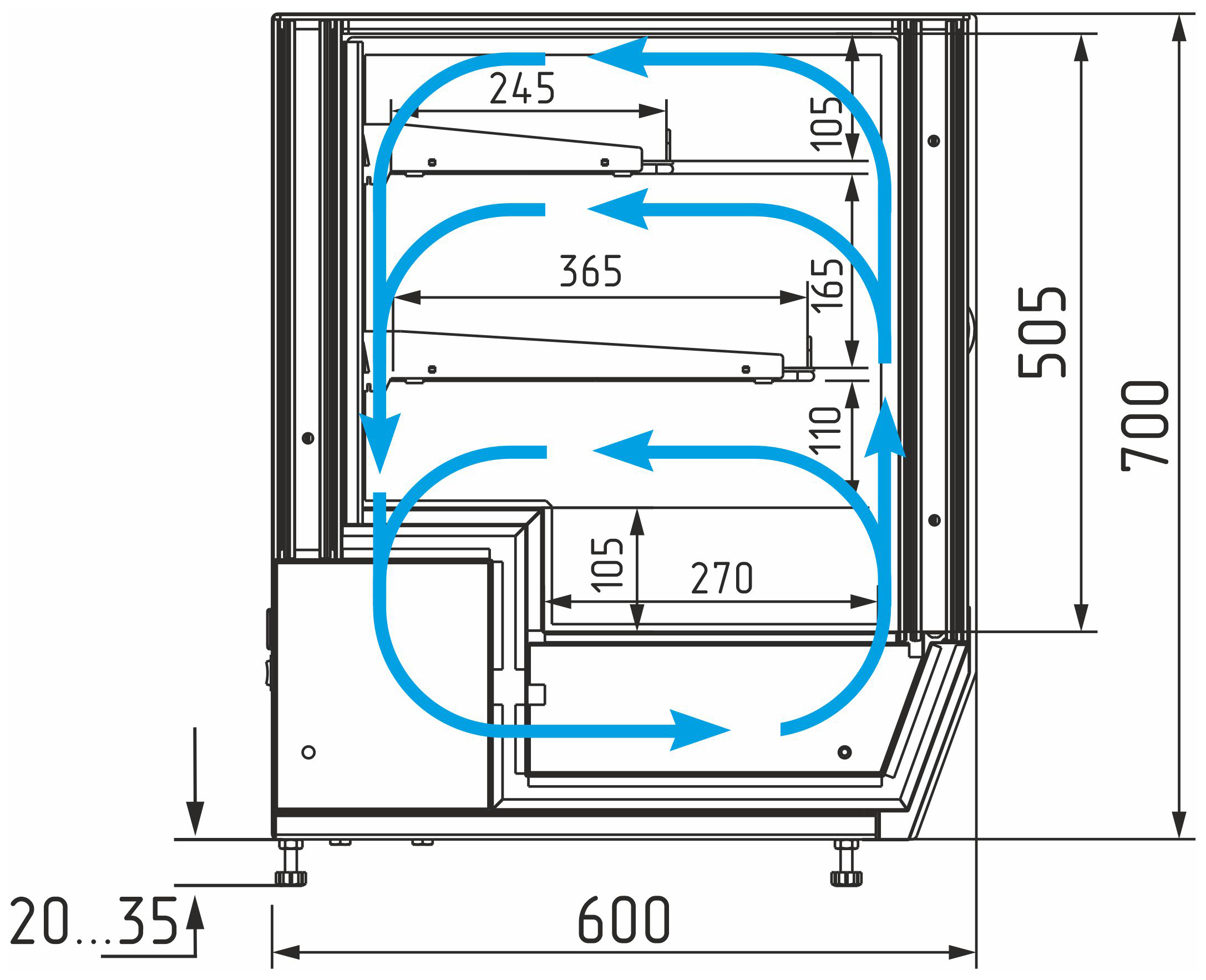 Каталог оборудования Холодильное оборудованиеВитрины настольныеВитрина холодильная настольная Carboma AC59 VM 1,2-1 (слайдер) (0430) Витрина холодильная настольная Carboma AC59 VM 1,2-1 (слайдер) (0430) Код товара: 063-689 Поделиться: WhatsAppTelegram СравнитьДобавить в КПВ избранное 0 139 770 ₽ В корзину 0 шт Под заказСамовывоз сегодня бесплатно Взять в кредит Купить в лизинг Получить консультацию в WhatsApp Описание Характеристики Отзывы 0 Инструкции 2 Витрина холодильная настольная Carboma AC59 VM 1,2-1 (слайдер) (0430) — это универсальная охлаждаемая витрина для демонстрации и кратковременного хранения кондитерских изделий, десертов, салатов и напитков. Идеально подходит для небольших кафе, баров и заведений общественного питания. Модель оснащена закалёнными боковыми стеклопакетами, раздвижными фронтальными и задними дверцами, а также двумя охлаждаемыми полками-решётками с ограничителями. Может устанавливаться на столешницу или встраиваться в барную стойку. Корпус выполнен из стали с ППУ-теплоизоляцией, а рабочая поверхность — из нержавеющей стали. Ключевые особенности: Динамическая система охлаждения — равномерное распределение температуры Компрессор европейского производства — высокая надёжность Электронный блок управления Carel — точный контроль температурного режима Выпариватель конденсата — исключает необходимость ручного слива Возможность установки полок под углом 5° — улучшенная презентация Фронтальные и задние раздвижные дверцы — удобный доступ с обеих сторон Боковая LED-подсветка — подчёркивает структуру десертов и изделий Современный кубический дизайн — стильный внешний вид Регулируемые ножки-опоры — устойчивость на любых поверхностях Настольное или встраиваемое размещение — гибкость установки Стабильный температурный режим — для безопасного хранения продуктов Глубина нижней зоны выкладки: 270 мм Глубина полок: 365 мм (верхняя) / 245 мм (нижняя) Длина нижнего поддона: 1166 мм Максимальная высота выкладки продуктов: нижний поддон — 150 мм, полки — 100 мм Максимальная нагрузка на полку: верхняя — 14 кг, нижняя — 21 кг. Температура окружающей среды: от 12 до 25 °C Относительная влажность воздуха: до 60% Carboma AC59 VM 1,2-1 (слайдер) (0430) — это надёжная и эргономичная охлаждаемая витрина с удобным доступом с обеих сторон, которая обеспечит качественную демонстрацию и сохранность продукции в кафе, барах и точках продаж.Изображение товара, представленного на фото, может отличаться от его фактического вида. Показать все Габаритные размеры1200×600×735 ммДиапазон рабочей температурыот +4 до +10 °CДлина1200 ммГлубина600 ммВысота735 ммРазмещениеГоризонтальная Площадь выкладки1,0 м²Полезный объем витрины0,12 м³Тип охлажденияДинамическое Климатический класс3 ХладагентR290, R600a Напряжение220 ВЭнергопотребление в сутки0,5 кВтКоличество полок2 штГабариты в упаковке1350×750×890 ммВес нетто107 кгВес брутто118 кгБрендПолюсВсе витрины настольные CarbomaВсе холодильные настольные витриныВсе стеклянные настольные витрины Оставить отзыв Еще никто не оставил отзыв на этот товар Брошюра на Carboma AMRA AC59 VM.pdfСхема Carboma AMRA AC59 VM 1,2-1 Slider.jpg Похожие товары Перейти в каталог Под заказ 176 300 ₽ Витрина кондитерская Carboma K70 VV 0,9-1 Standard Паттерн (0107 Ольха) Под заказ 137 400 ₽ Витрина кондитерская Carboma K70 VM 0,9-1 Light Паттерн (0108 Темный дуб) Под заказ 140 100 ₽ Витрина кондитерская Carboma KC71-150 N 0,6-1 нейтральная Под заказ 121 800 ₽ Витрина конди